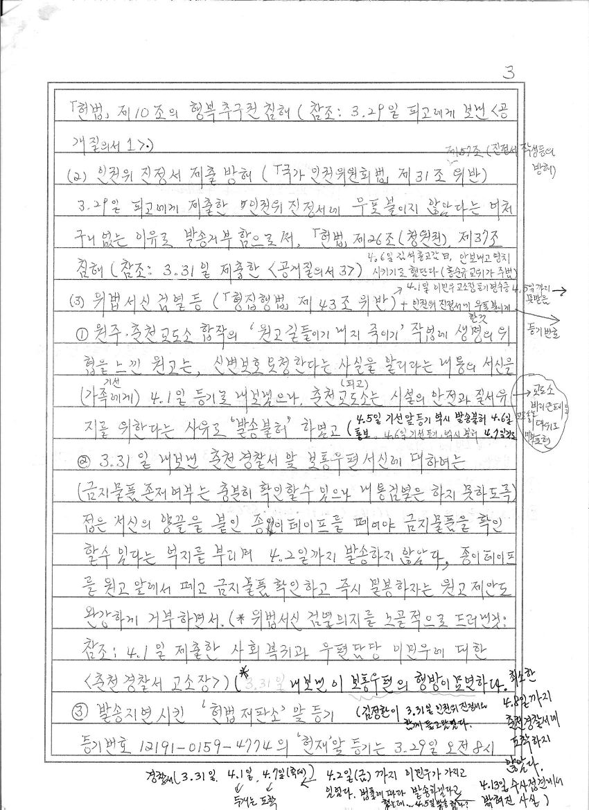 이러한 교도소 내 비리 근절을 위하여, 원고는 국가인권위로 부터 교도소 위법서신검열관련 [형집행법] 시행령과 [법무부 지침]에