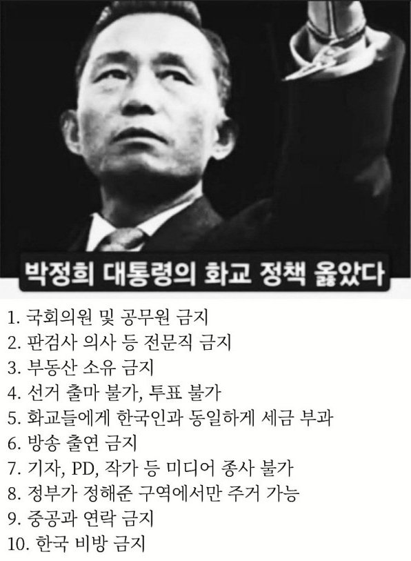 [외국인 토지법](1961. 09. 18 시행)을 시행, 자금력 막강한 '화교'를 대상으로 한 법임.