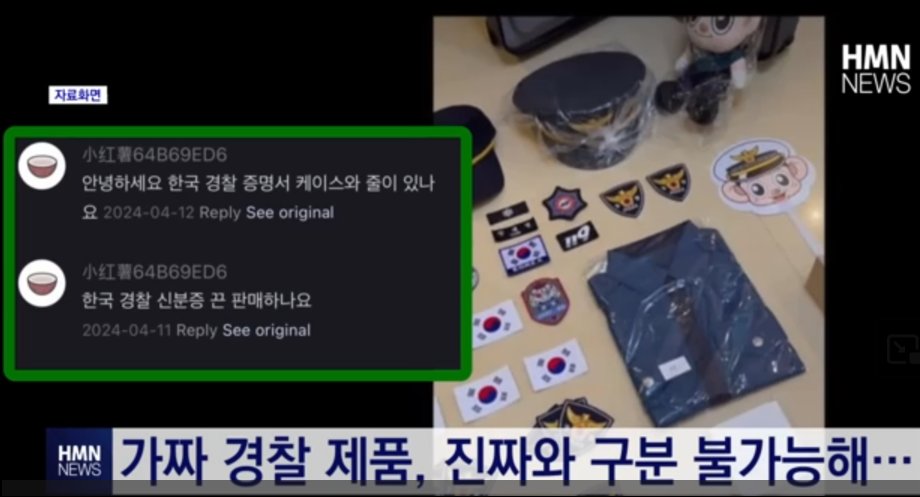 경찰 사칭 중국인의 경찰복, 뱃지 구매