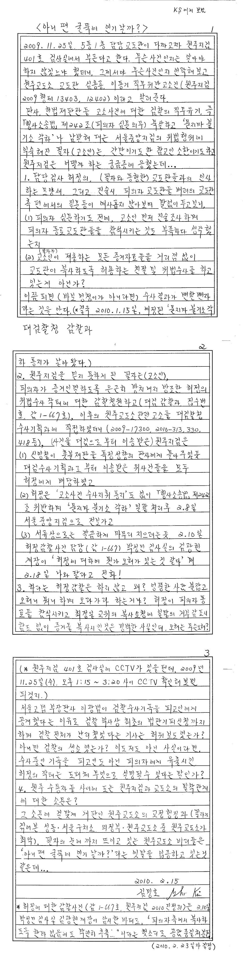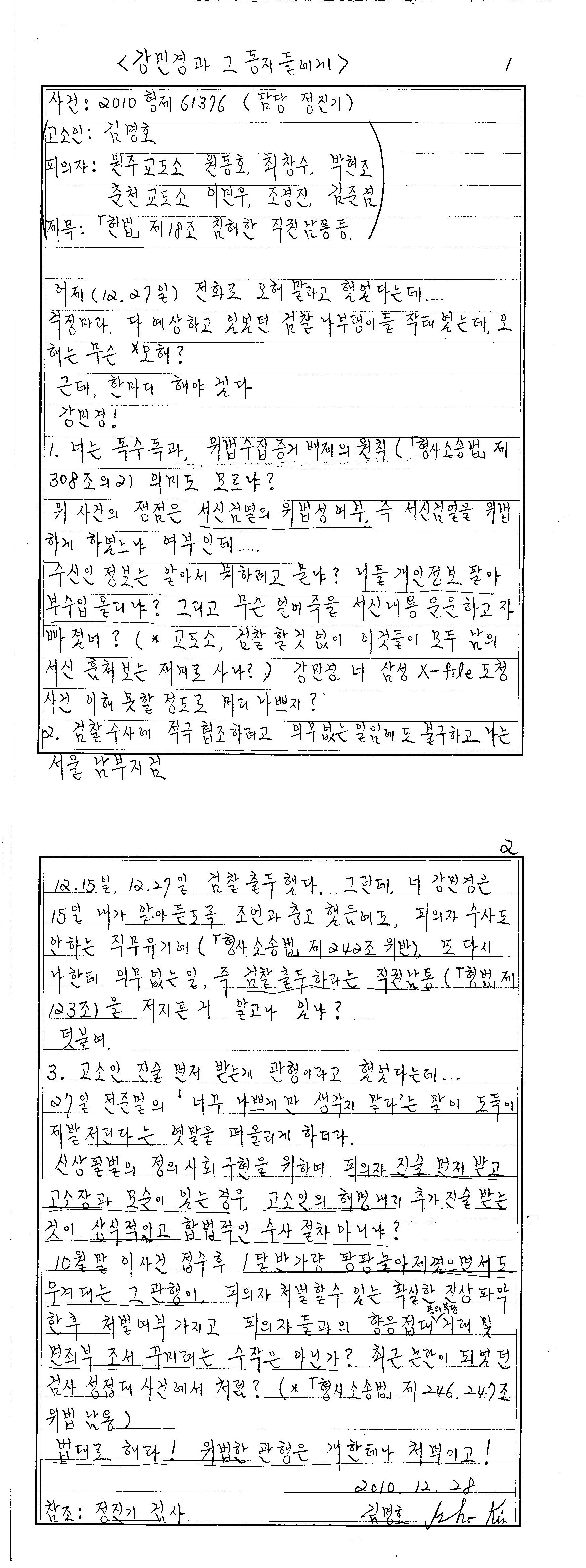 2010.12.02 검찰청 춘천지방검찰청에게 문서송부촉탁서(인증등본) 발송