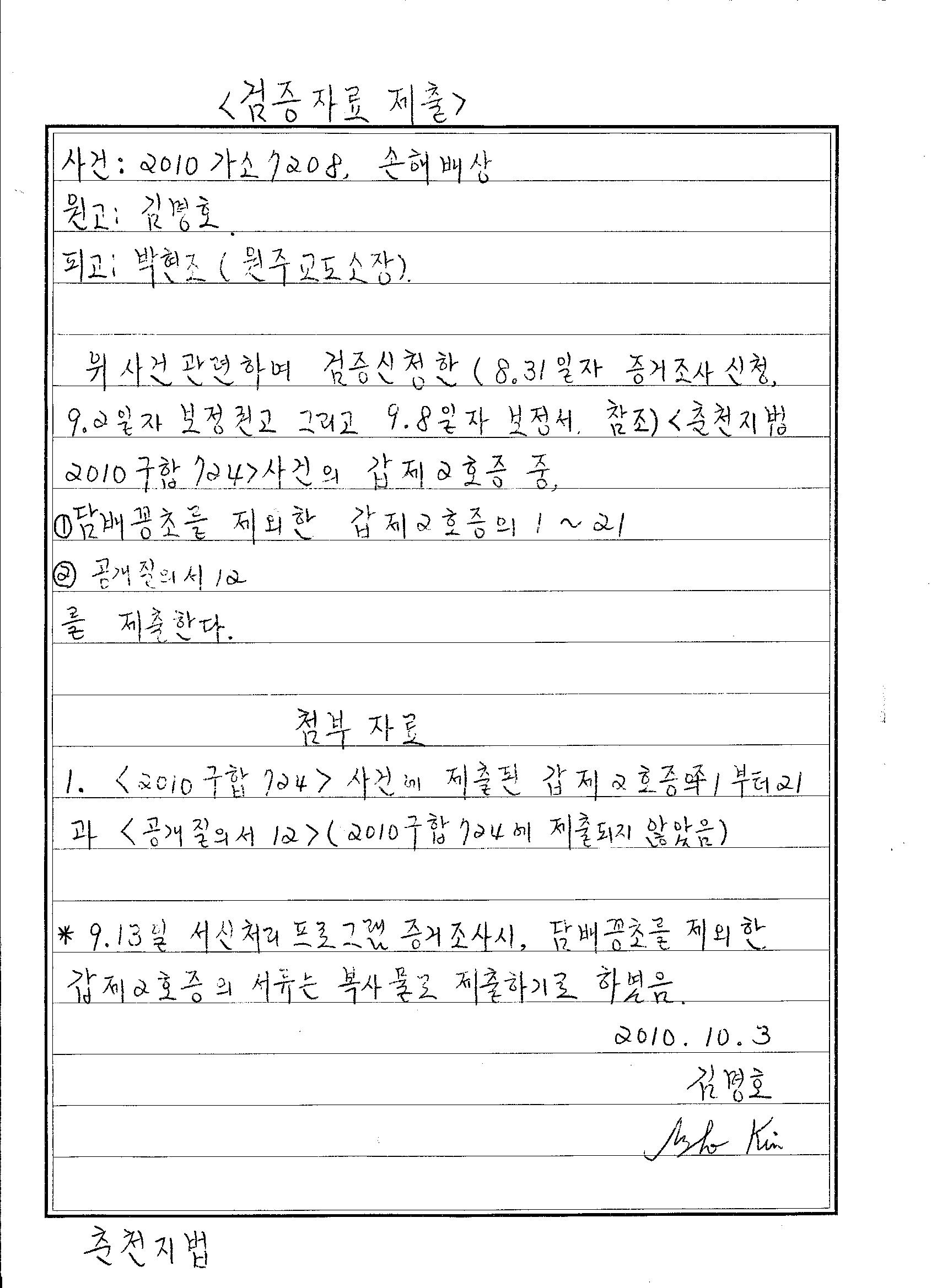 2010.10.05 원고 김명호 검증자료제출 제출