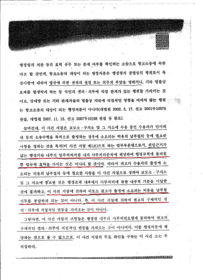 * 민사출정비용 납부의 의무가 없음에도 불구하고(서울행정법원 2010구합11337 판결문, 2012.3.29일 법무부의 위법한 지침, '민사재판 등 소송 수용자 출정비용 징수에 관한 지침'에 대하여 헌재가 생색내기용 위헌결정을 내렸다. 2010헌마47 참조),