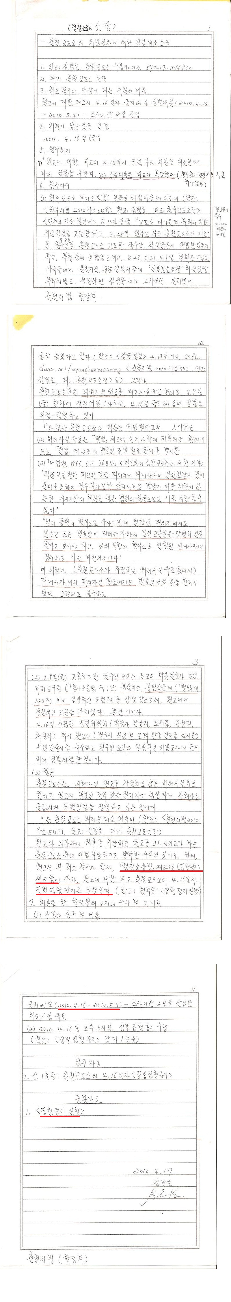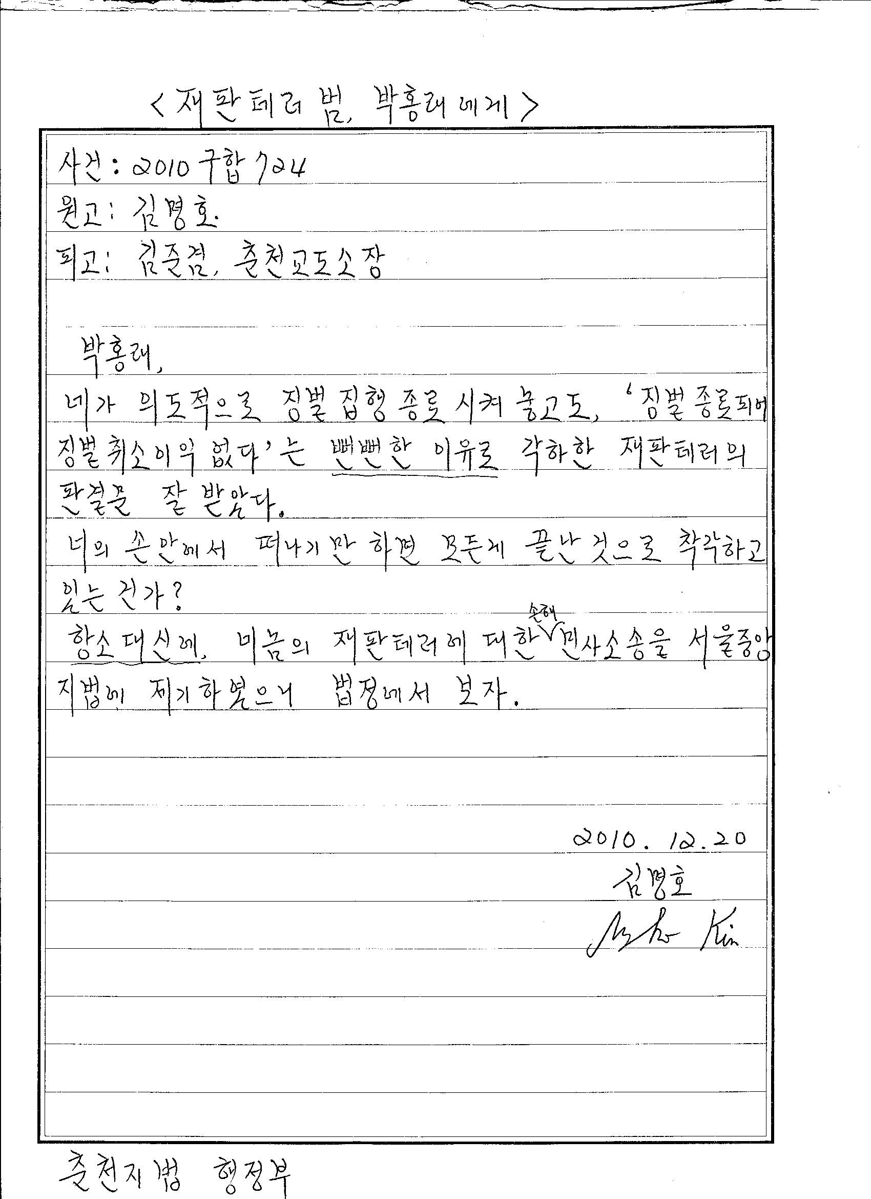 2010. 12.20 재판테러범, 박홍래에게 제출