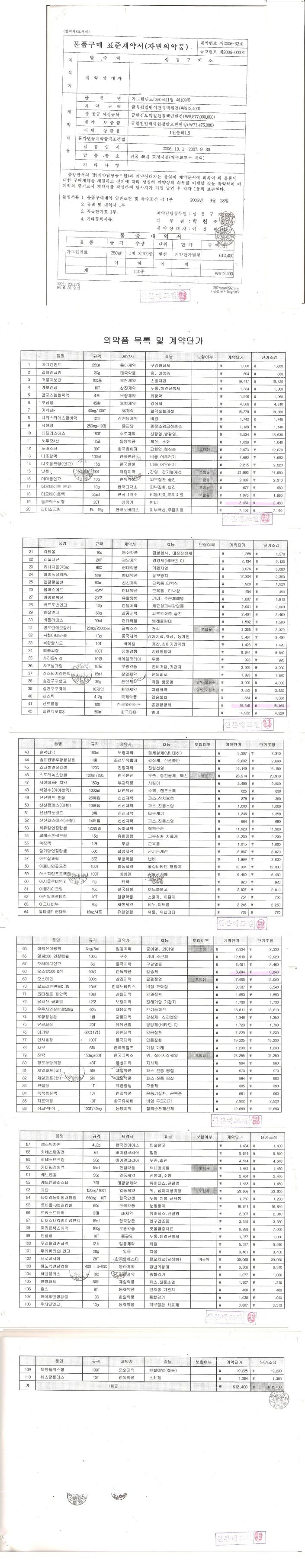 | 교정시설 구매 품목, 의약품 가격과 식단표 |