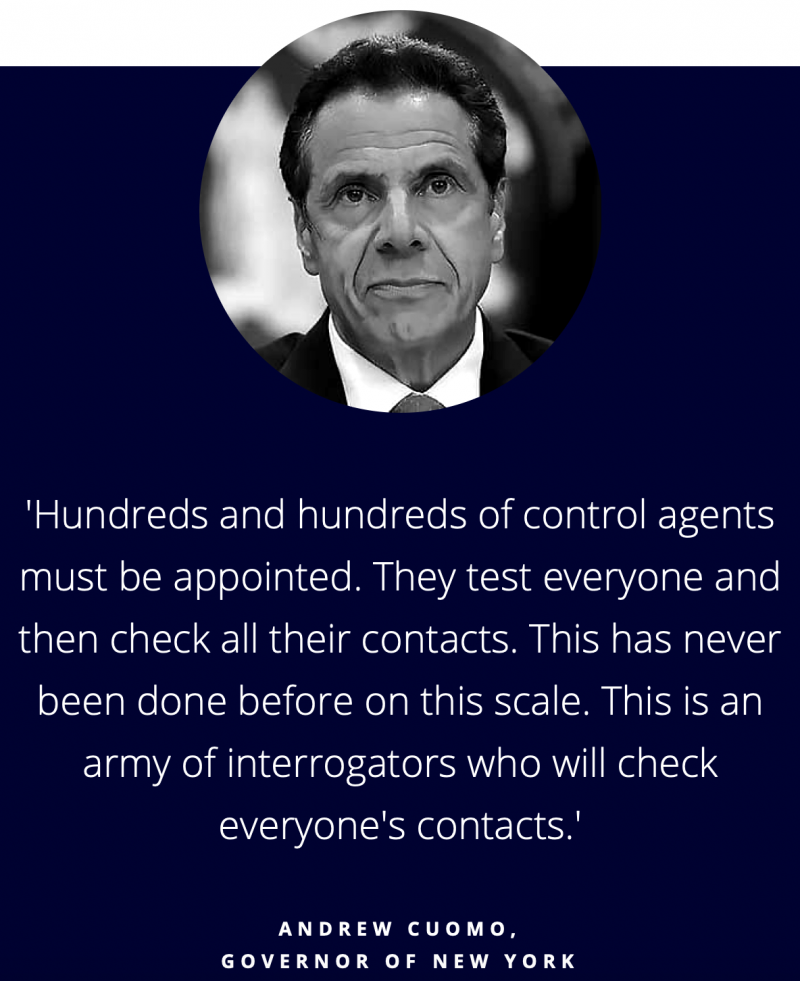 Everyone’s Contacts Must Be Checked In a leaked government video (10) we see a conversation between former American president Bill Clinton and Andrew Cuomo, the governor of the state of New York. They discuss how to set up a large control system to test the entire population and check all their contacts. They discuss how to build an army to carry out this control system.