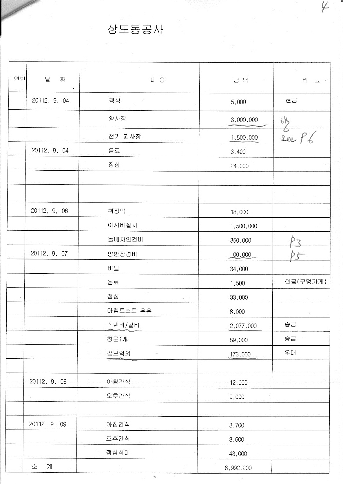 나중에 알고보니 페인트 가게와 건축자재 가게의 자재비도 떼 먹었기에,