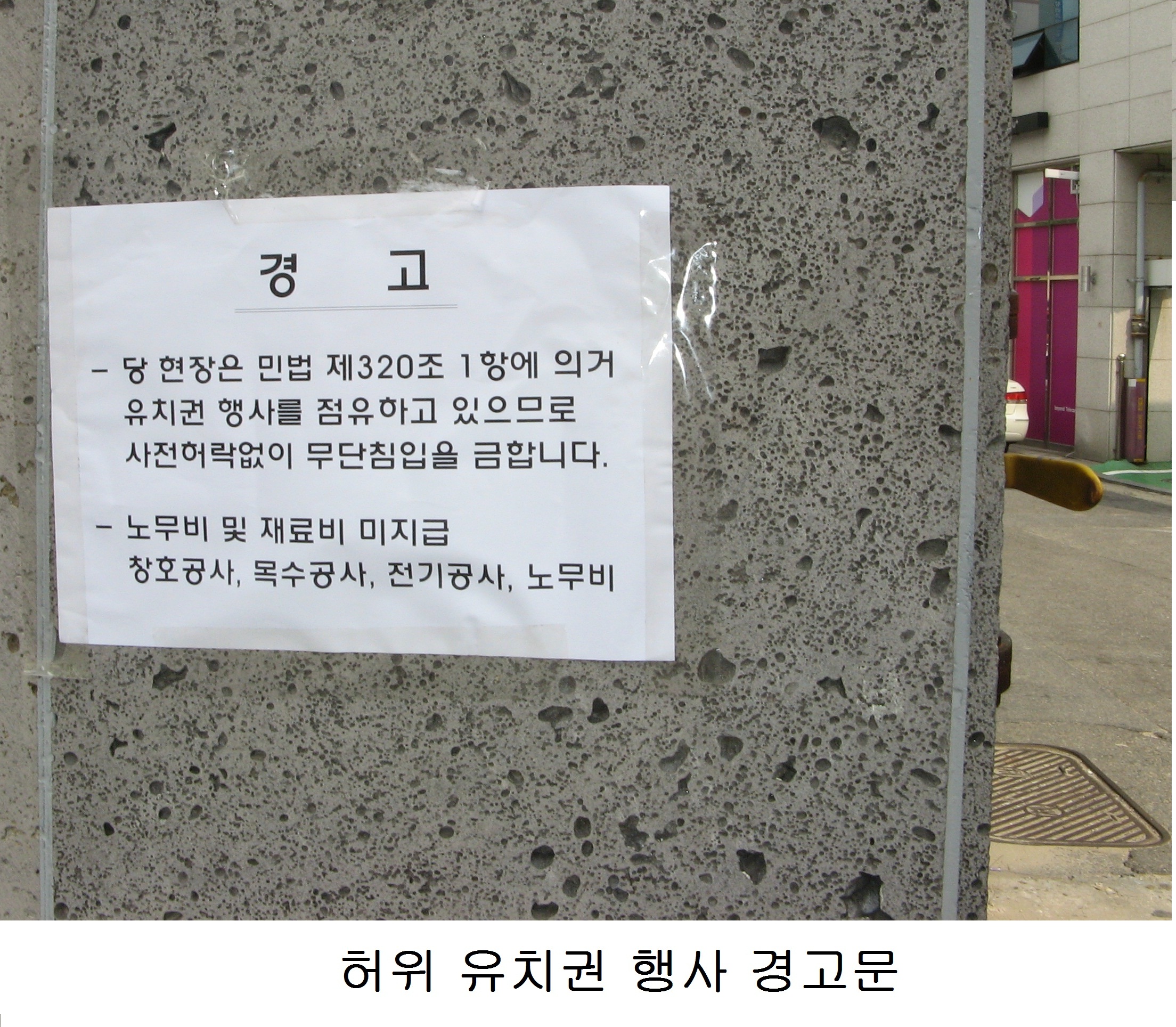 '세상이 머라해도 인건비는 줘야 하는게 정상이죠. 지금부터 이우대 곤조가 간다(2013.2.27 19:11 010-5443-103*)'라는 협박 메세지가 왔다. 경찰이 조폭들 키운다더니...
