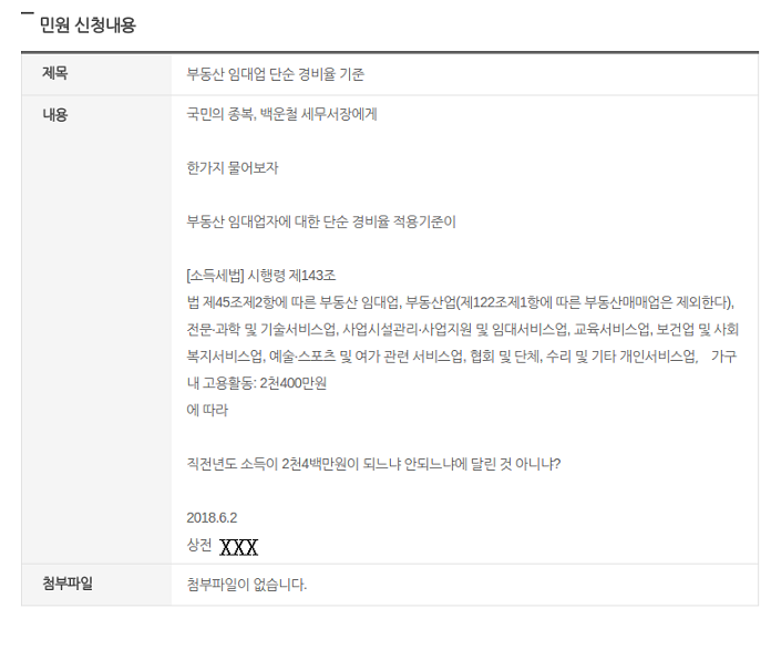 질문: 국민의 종복 동수원 세무서장, 김운섭, '추계소득'이 뭔지 아냐?