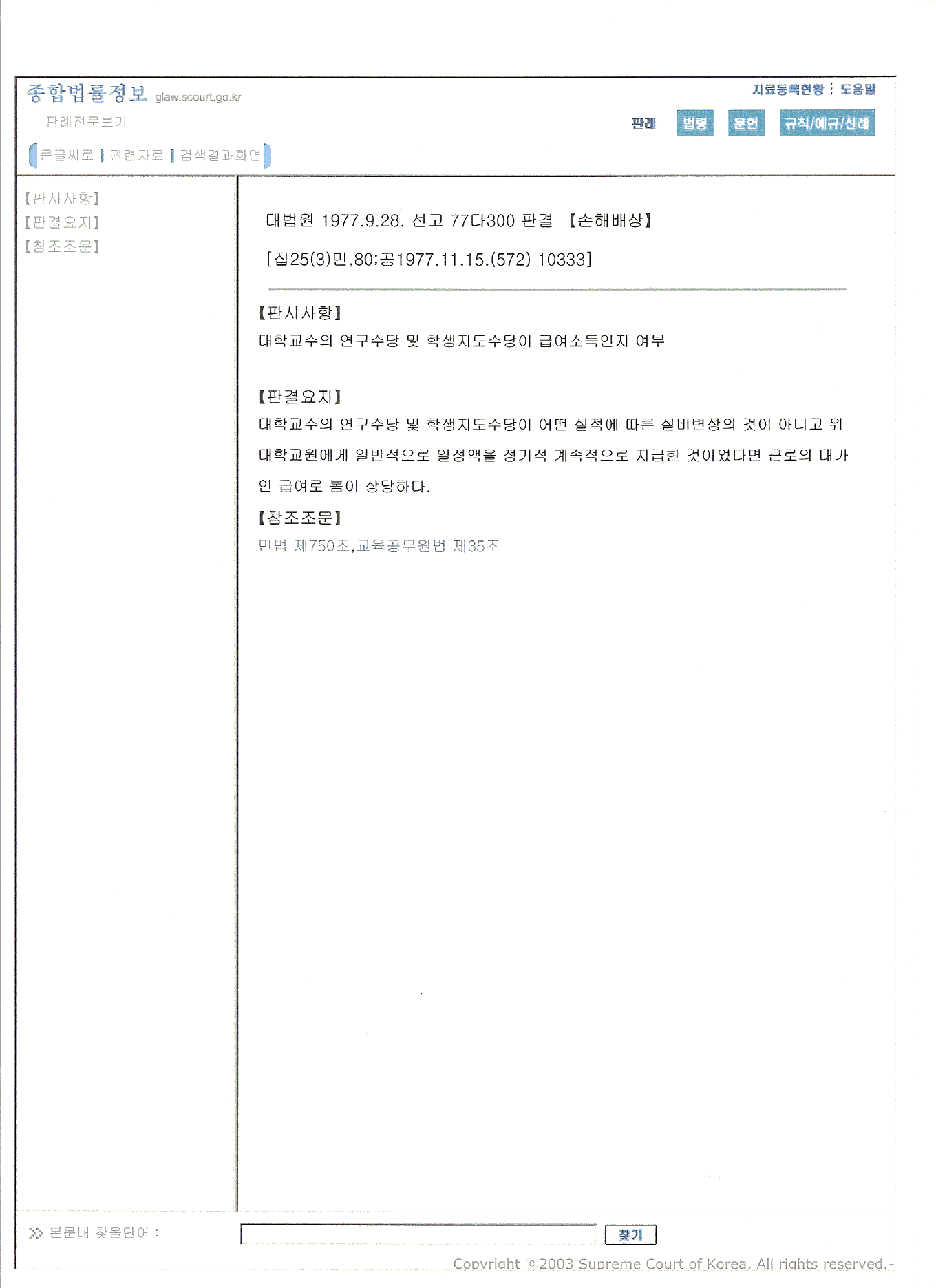 구성된 재판부에서 결정된 판결이다”며 판결의 위법성을 주장했다. 1977년 대법원은