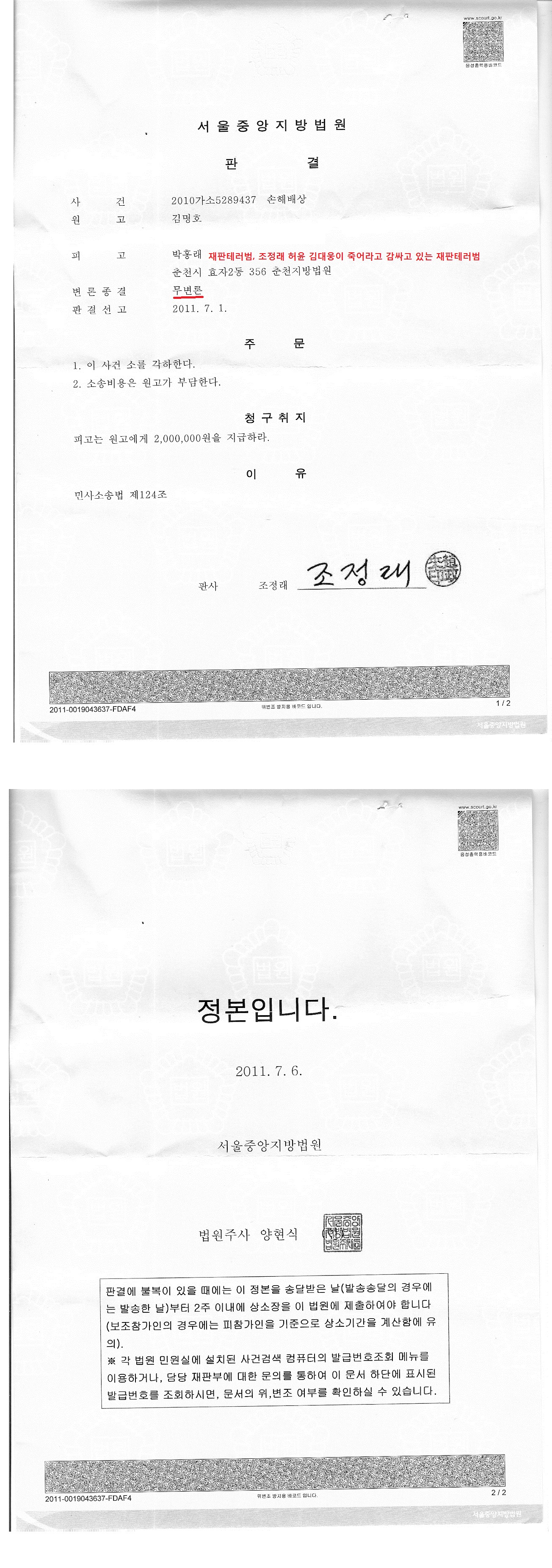 미친년 헛소리를 하였을 것이다. 그것 자체만으로 허위공문서의 판결문을 작성한 것이니 판사 새끼들 고발해서 감옥에 처 넣어야 한다.