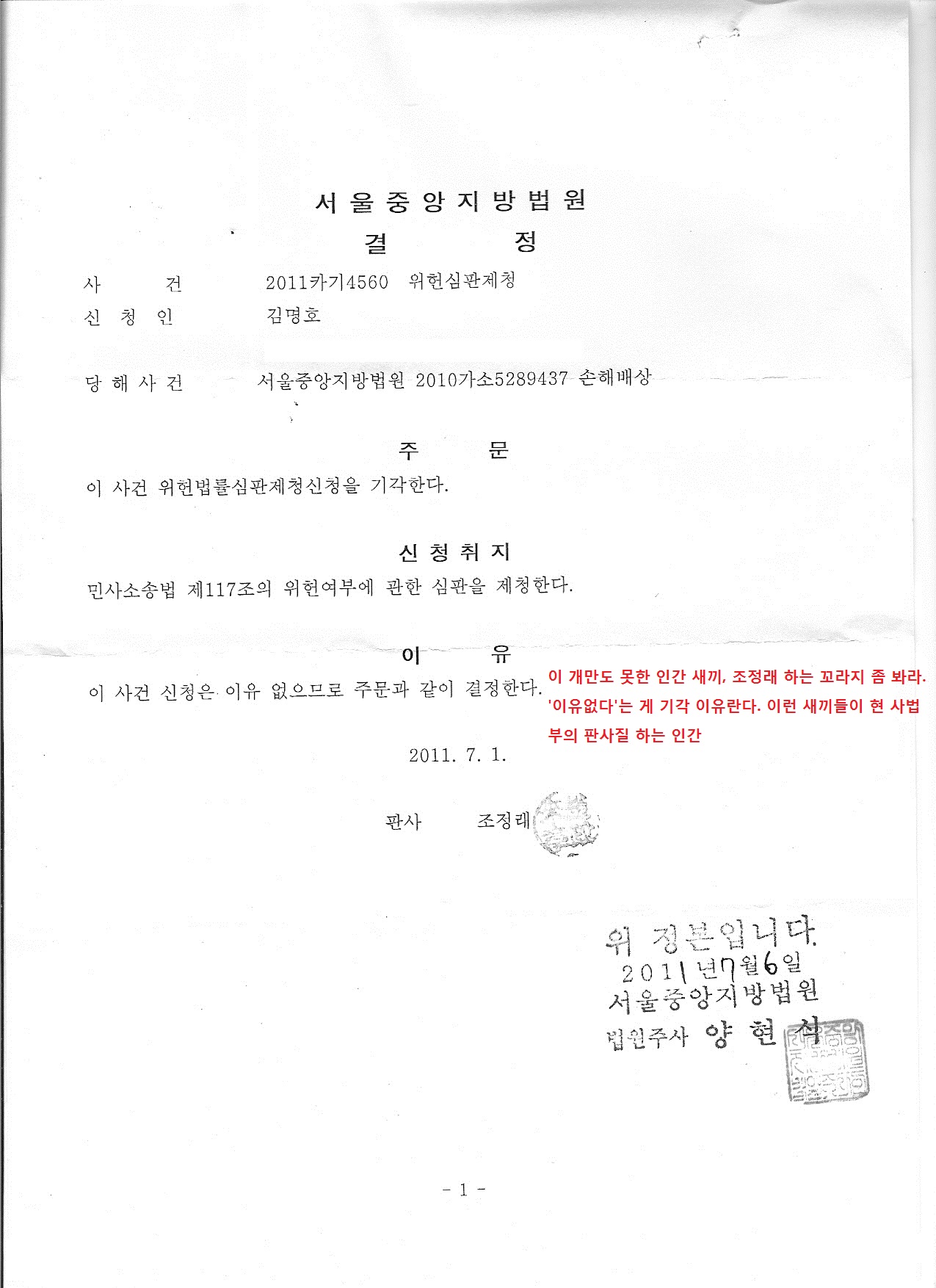 판사라는 것들은 이렇게도 철저하게 파렴치한 인간 새끼들인 것이다.