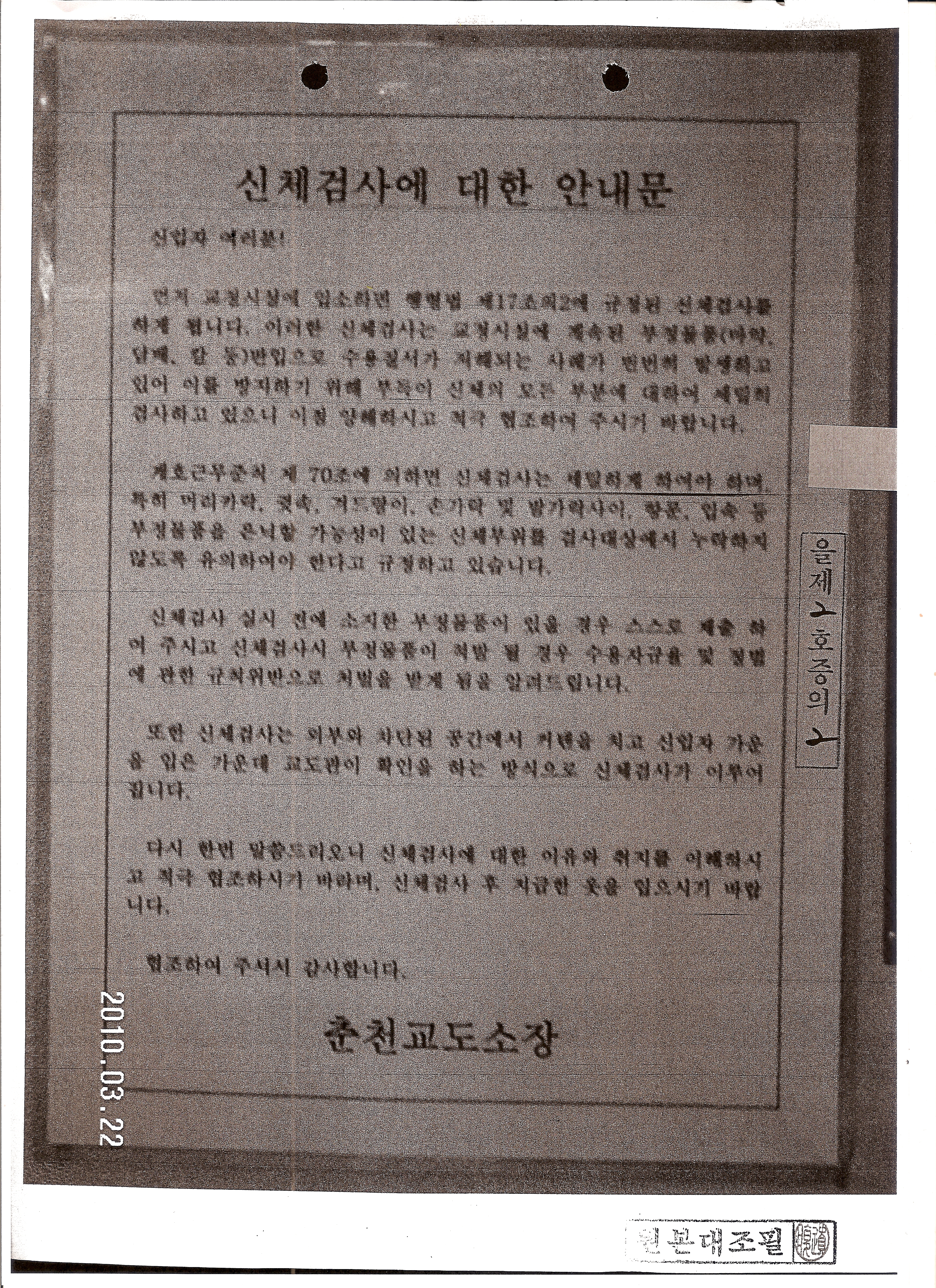 물론 편지 봉투는 밀봉하지 않았으므로 교도소측은 금지물품을 충분히 확인할 수 있었다. 그럼에도 불구하고, 원주와 춘천교도소 놈들은 금지물품 확인할 수 없다며