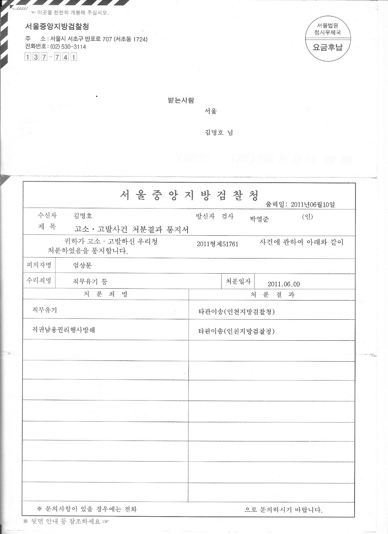 자신들 비리관련 고소장들을 발송불허하는 등의 개지랄을 떤 것. 그 진상들이 인권위 조사에서 낱낱이 밝혀진 결과의 산물이 바로