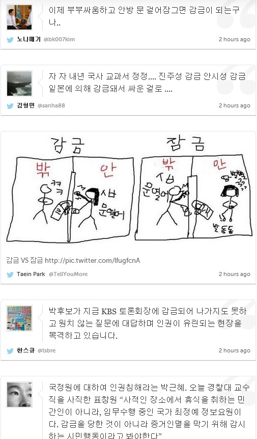 문재인, 박근혜, 안철수 중 박근혜를 찍겠다는 인간들이 제일 많단다. 자주 독립국가라는 대한민국에 억압과 착취 당하기를 즐기는 새디스트들이 이렇게 많을 줄이야...