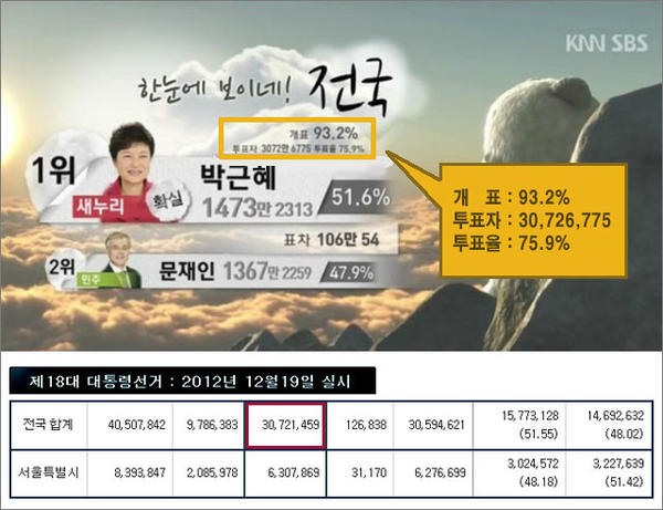 * '각 후보들에게 분류된 표는 그 상태로 중앙선관위 전산실로 보내지게 된다'는 안병도의 설명, 즉 수검을 하지 않는다는 것과 '모든 개표소에서 이 전자 개표기를 사용하기 때문에 확실히 달라진 개표 모습을 볼 수 있을 겁니다'