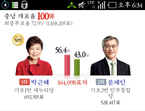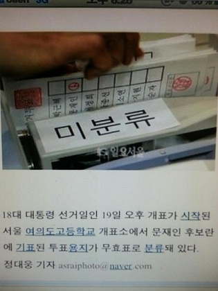 * 개표는 재외국민과 부재자 투표부터 하였고, 선관위 자료에 의하면 문재인이 박근혜를 앞섰다는데,