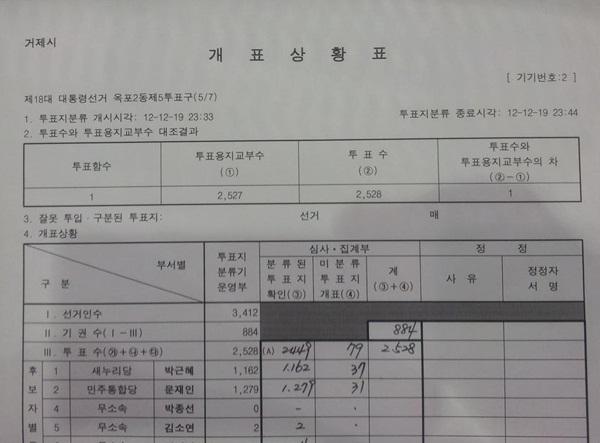 * 위 사진을 찍은 인천 동부 체육관 개표 참관인이 1.5일 촛불집회에서 증언한 동영상은 아래에.
