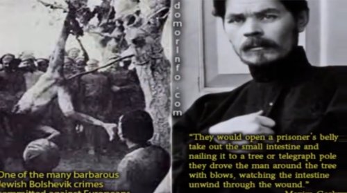 그것들이 개돼지들로 실험하며 수천만 학살한 거 봐라 => 유대인 레닌, 트로츠키의 작품들 배 가르고 내장 잡아 당겨 나무에 둘둘 마는 거, 죽을 때까지