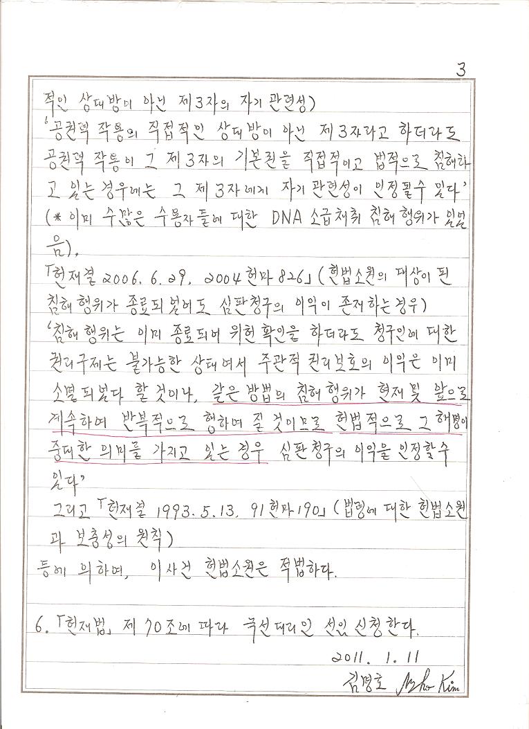 <사례5>: 아래 내용은 2022년 3월 4일 제출한 효력정지 가처분신청서(사건번호는 2022헌사192)에 기재한 내용입니다.