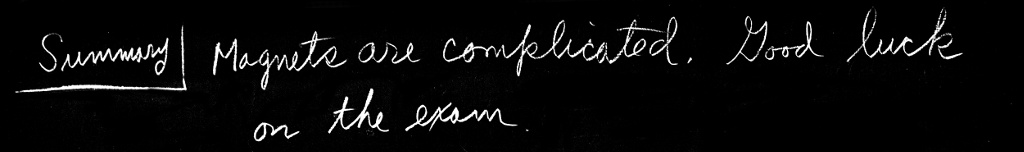 We now close our study of electricity and magnetism. In the first chapter, we spoke of the great strides that have been made since the early Greek observation of the strange behaviors of amber and of lodestone. Yet in all our long and involved discussion we have never explained why it is that when we rub a piece of amber we get a charge on it, nor have we explained why a lodestone is magnetized! You may say, “Oh, we just didn’t get the right sign.” No, it is worse than that. Even if we did get the right sign, we would still have the question: Why is the piece of lodestone in the ground magnetized? There is the earth’s magnetic field, of course, but where does the earth’s field come from? Nobody really knows—there have only been some good guesses(* 자전). So you see, this physics of ours is a lot of fakery—we start out with the phenomena of lodestone and amber, and we end up not understanding either of them very well. But we have learned a tremendous amount of very exciting and very practical information in the process!