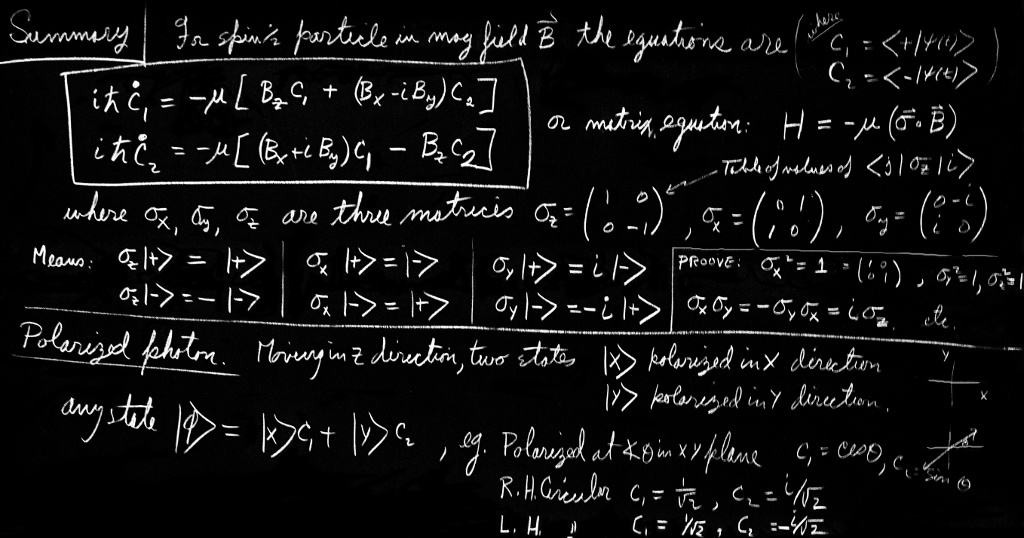 So we have discovered the “equations of motion for the spin states” of an electron in a magnetic field. We guessed at them by making some physical argument, but the real test of any Hamiltonian is that it should give predictions in agreement with experiment. According to any tests that have been made, these equations are right. In fact, although we made our arguments only for constant fields, the Hamiltonian we have written is also right for magnetic fields which vary with time. So we can now use Eq. (10.23) to look at all kinds of interesting problems.