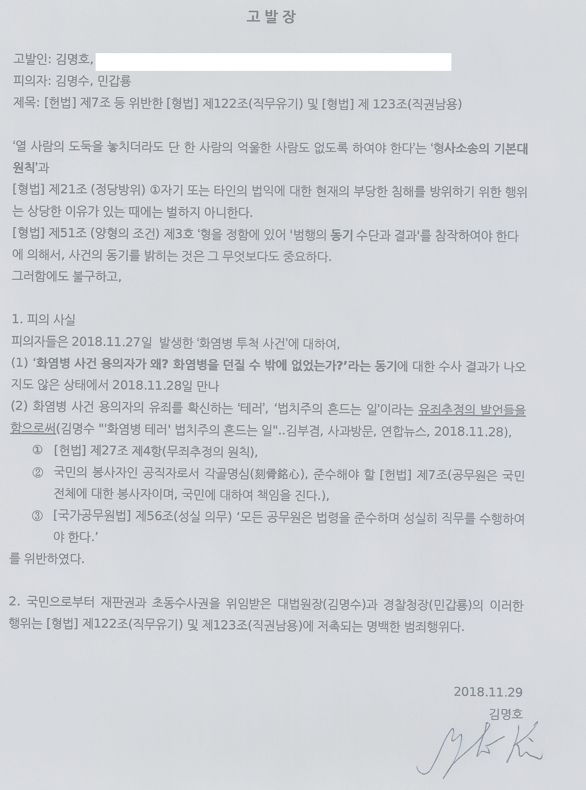 [2018.11.29] 국민의 종놈들 김명수, 민갑룡 고발