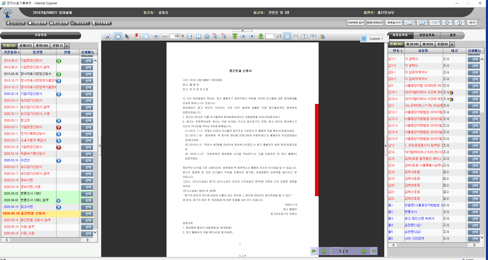 다시 말해서 소송당사자들 및 관련자들만이 제출서류 접근할 수 있어야 함에도 불구하고 이 개만도 못한 판사년놈들이 지들 배때기 채우기 위한 프로그램을 만들어 서류조작 및 소송당사자들 권리를 차단하고 있다는 말이다.