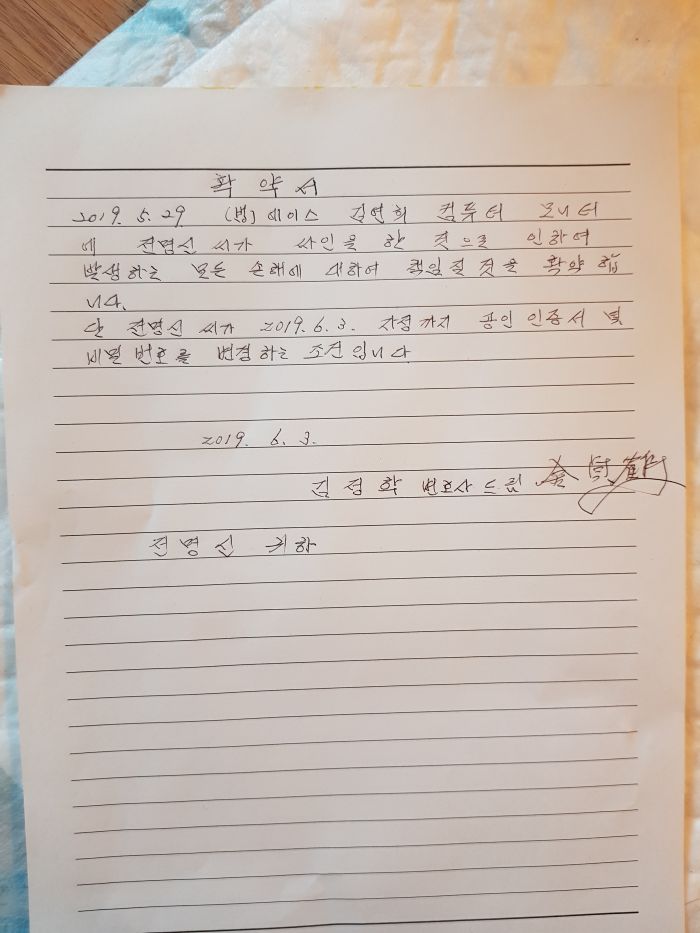 더욱 의심스러운 것은, 같은 28일에 (지평이 아닌) 에이스의 김정학 변호사도 사임서를 제출했다는 거다, 역시나 수임료 돌려주며 미안하다며.