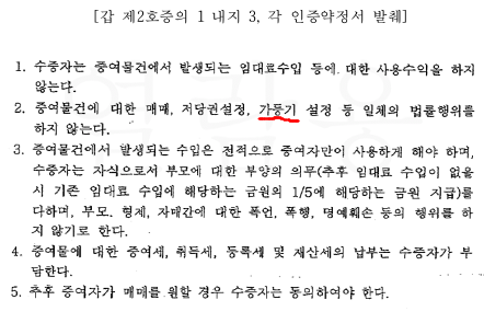 2. 증여물건에 대한 '가등기 불허 약정' 위반 등을 하여