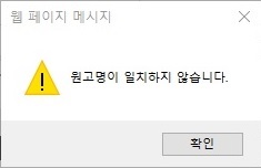 오른쪽 그림과 같은 '원고명이 일치하지 않습니다'라는 엉뚱한 화면이 뜬다. 그림 클릭하면, 상황 재현할 수 있다.