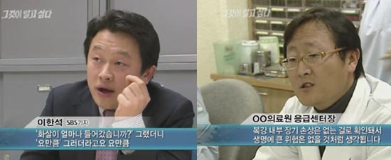 5년 전 언론이 입을 닫은 것처럼 당시 박 판사가 찾아간 병원의사들의 말도 어이가 없기는 마찬가지다. 기자의 질문에 의사는 손톱만큼 다쳤다고 했다. 그러나 카메라 앞에서는 엄청난 수위의 발언을 했다. 그 상처가 석궁에 난 것이냐에 진위는 일단 떠나서 손톱만큼 다쳤다는 말과 달리 의사는 “생명에 큰 위험은 없을 것”이라는 말장난으로 여론을 호도했다. 말이야 틀린 말은 아니다. 손톱만큼 다쳤으니 당연히 죽을 일은 없다.