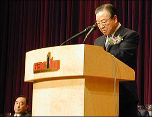 63빌딩 연회장 중에서 가장 크며 원탁테이블로 디너식을 차릴 경우 최대 900여명을 수용할 수 있다는 국제회의장은 시작부터 이미 꽉 들어찼다. 단상 내빈석에는 낯익은 정치인들의 얼굴이 눈에 띄었다.