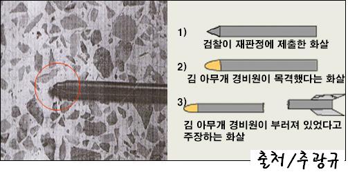세발이라고 주장하는 겁니다. 그 당시 현장에 맨 먼저 출동한 경찰에게 그 화살이 현장에서 수거한 건지 물어봤는데 명확하게
