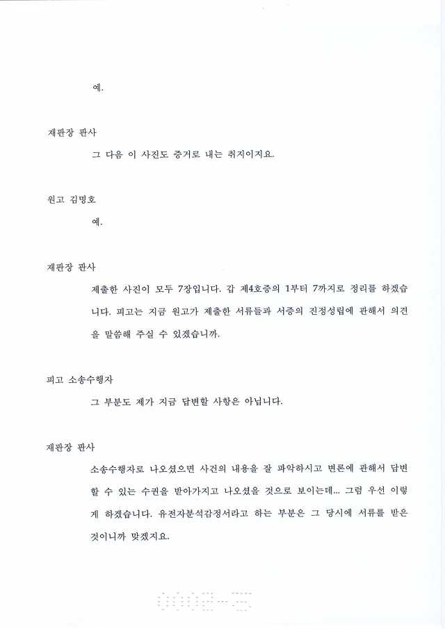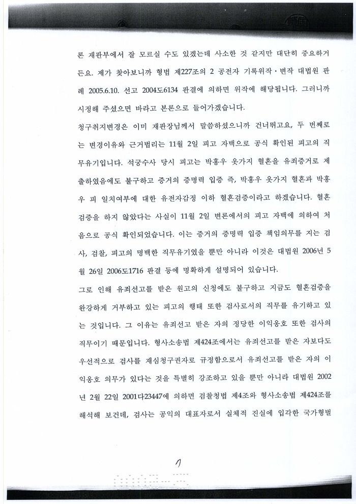 국과수에 유전자 감정의뢰 보낸 목적이 뭐냐? 혈흔 일치 여부 판단하려고 하는 거 아냐?