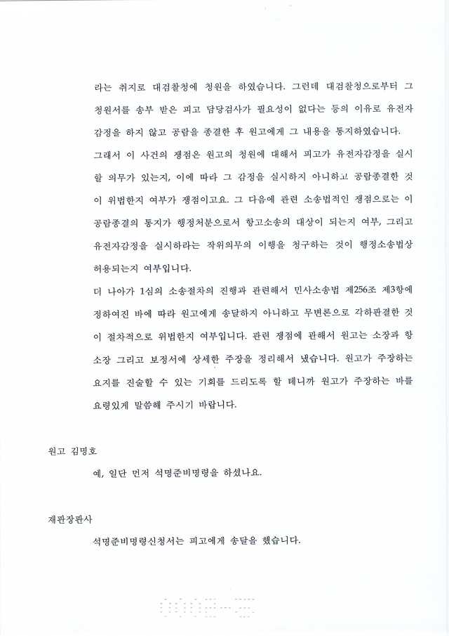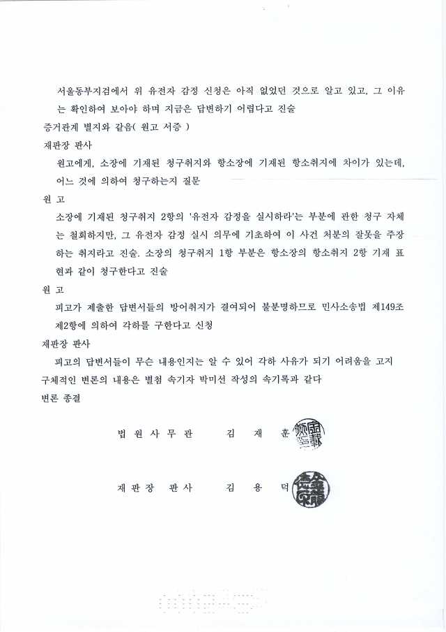 누가 행정소송 관련한 감정 물어 봤어? 석궁사건 수사 당시 유전자 감정 했는 지 물어 봤지! 공직자라는 쓰레기들이 어떻게 하면 상전인 국민에게 사기칠 궁리나 하고 자빠져 있기나 하고. |