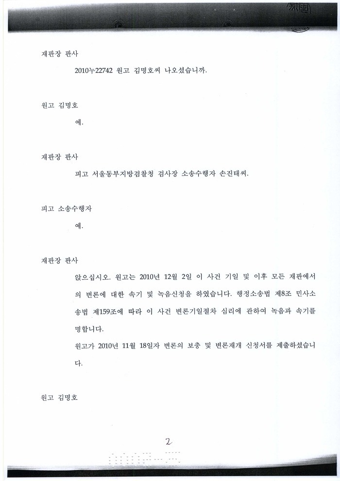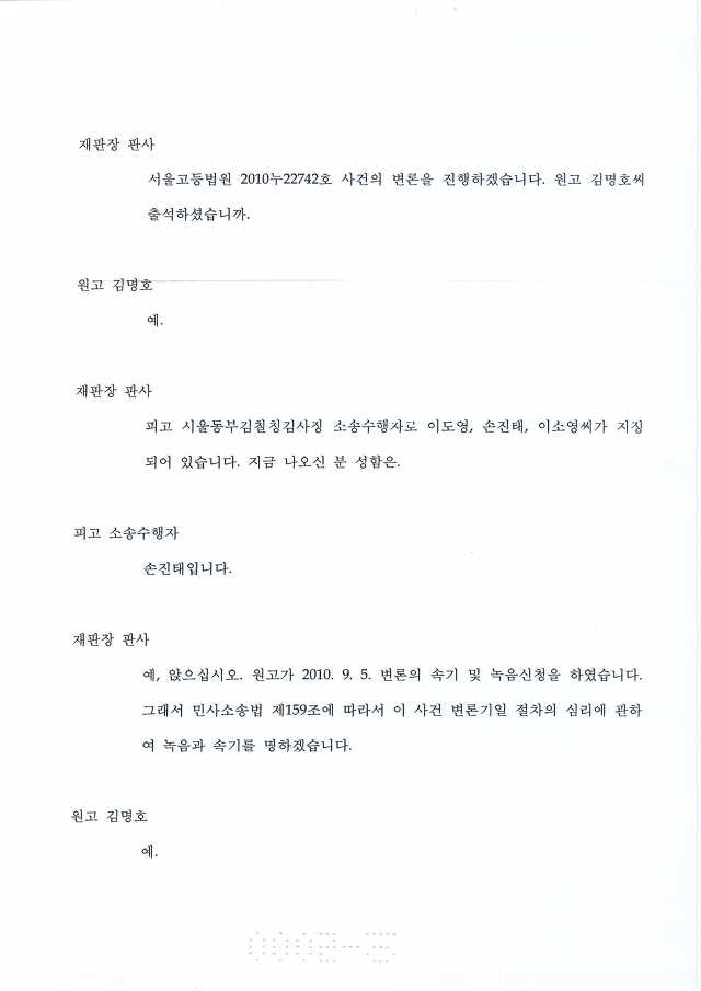 <서울고법 2010누22742> 2010. 11. 2일자 변론조서