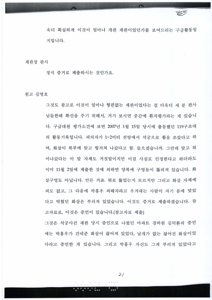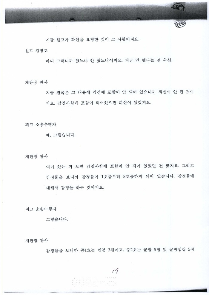 박홍우 피가 아닌 제 3자의 피로 증거조작하였기에 박홍우 옷가지와 박홍우 피의 일치 여부에 대한 유전자 감정을 고의적으로 하지 아니하였다. 증거 조작한 검찰 놈들과(백재명, 조주태 검사) 혈흔 일치 여부 검증도 없이 증거채택하여 유죄 판결 내린 법원의 재판테러범들이(김용호, 이회기, 신태길, 이홍훈, 김홍도, 노정희, 김용덕 판사등의 쓰레기들 집단들) 혈흔 검증하지 않으려고 발버둥 치고 있다. |