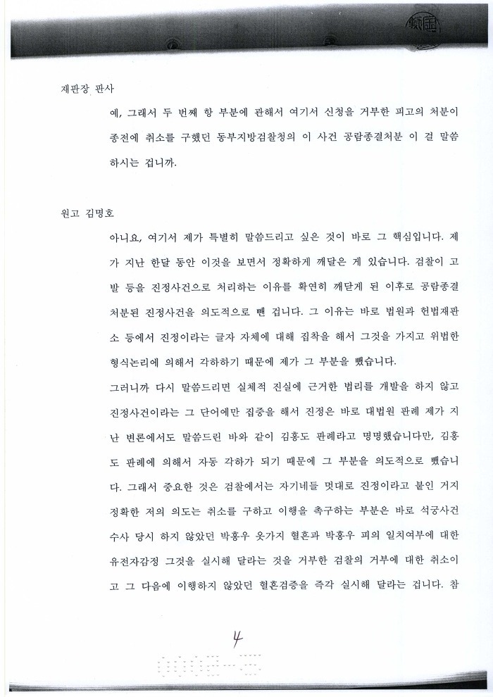 석궁사건 수사 당시, 박홍우 옷가지 혈흔과 박홍우 피 일치 여부에 대한 유전자 감정이 이루어 지지 않았다는 사실을 처음으로